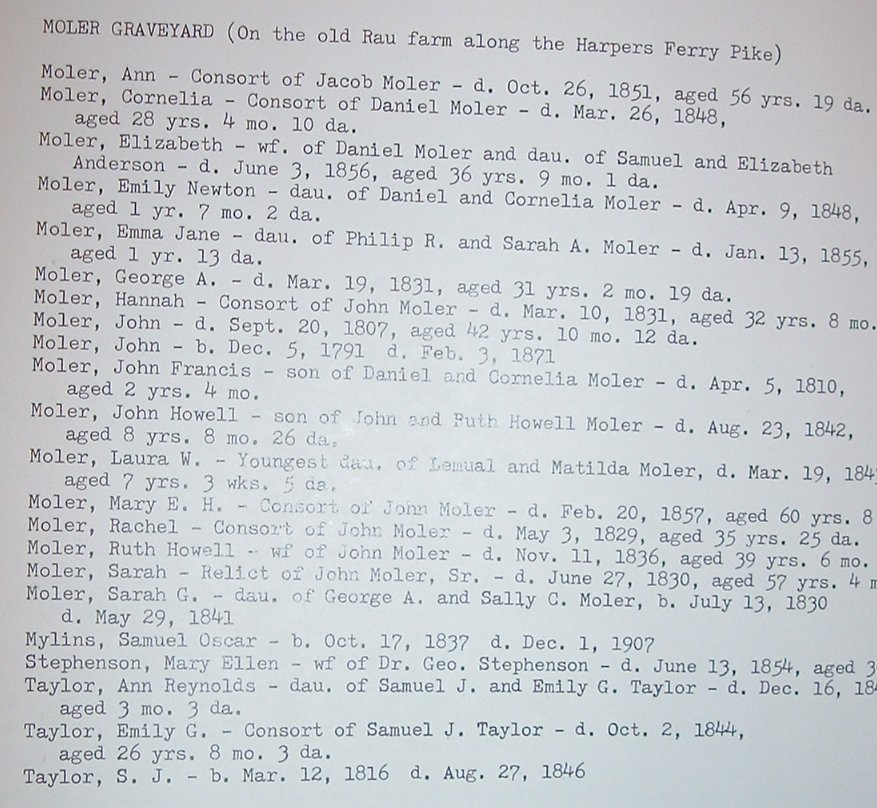 Moler Cemetery, Harpers Ferry Pike, Rau Farm - Jefferson County, W VA